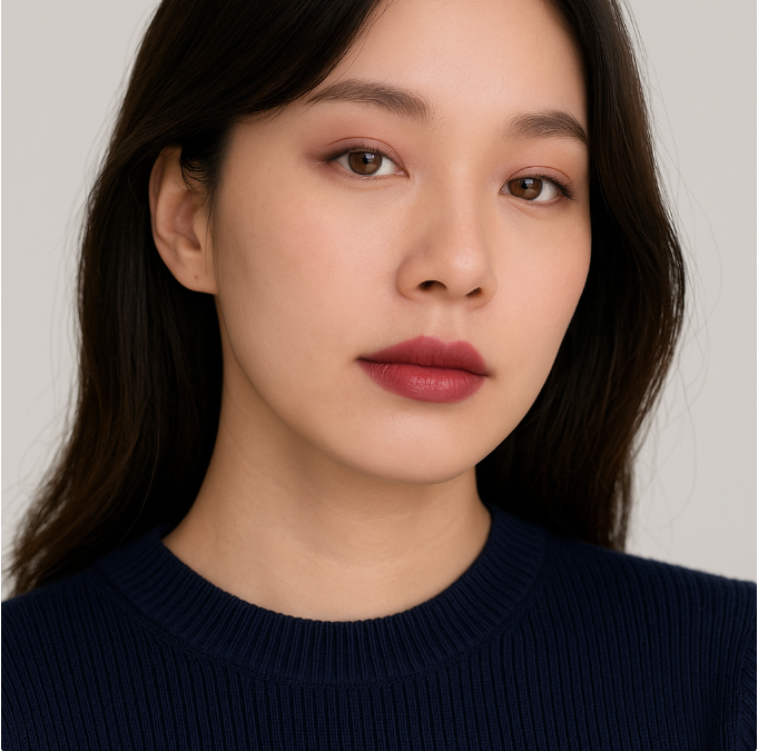 겨울쿨톤이 쨍한 립 대신 차분한 오피스 메이크업을 연출할 때도 분위기 있게 소화됩니다