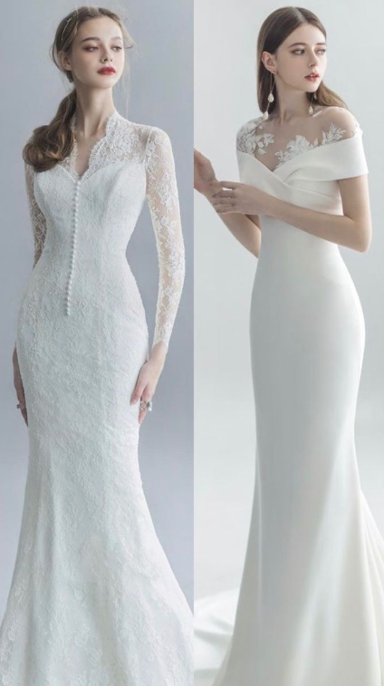 머메이드 드레스나 쉬폰 및 레이스로 장식된 드레스는 우아함을 더합니다
